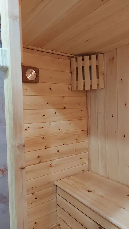 Финская сауна, купель и душевая кабина из кедра в центре здоровья и красоты «Релакс» (г. Новосибирск)