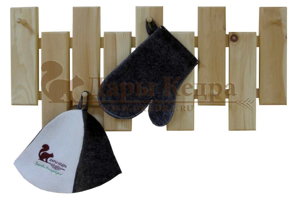 Вешалка банная (малая) из кедра Порадуйте себя и своих близких вешалкой из натурального дерева. Она станет оригинальным нужным подарком, украсит прихожую, баню или станет дополнением к основному подарку для новосёлов. Возможно изготовление по Вашим размерам. Покрытие в цвет, браширование, дополнительное оформление - также по Вашему желанию (в стоимость не входит).