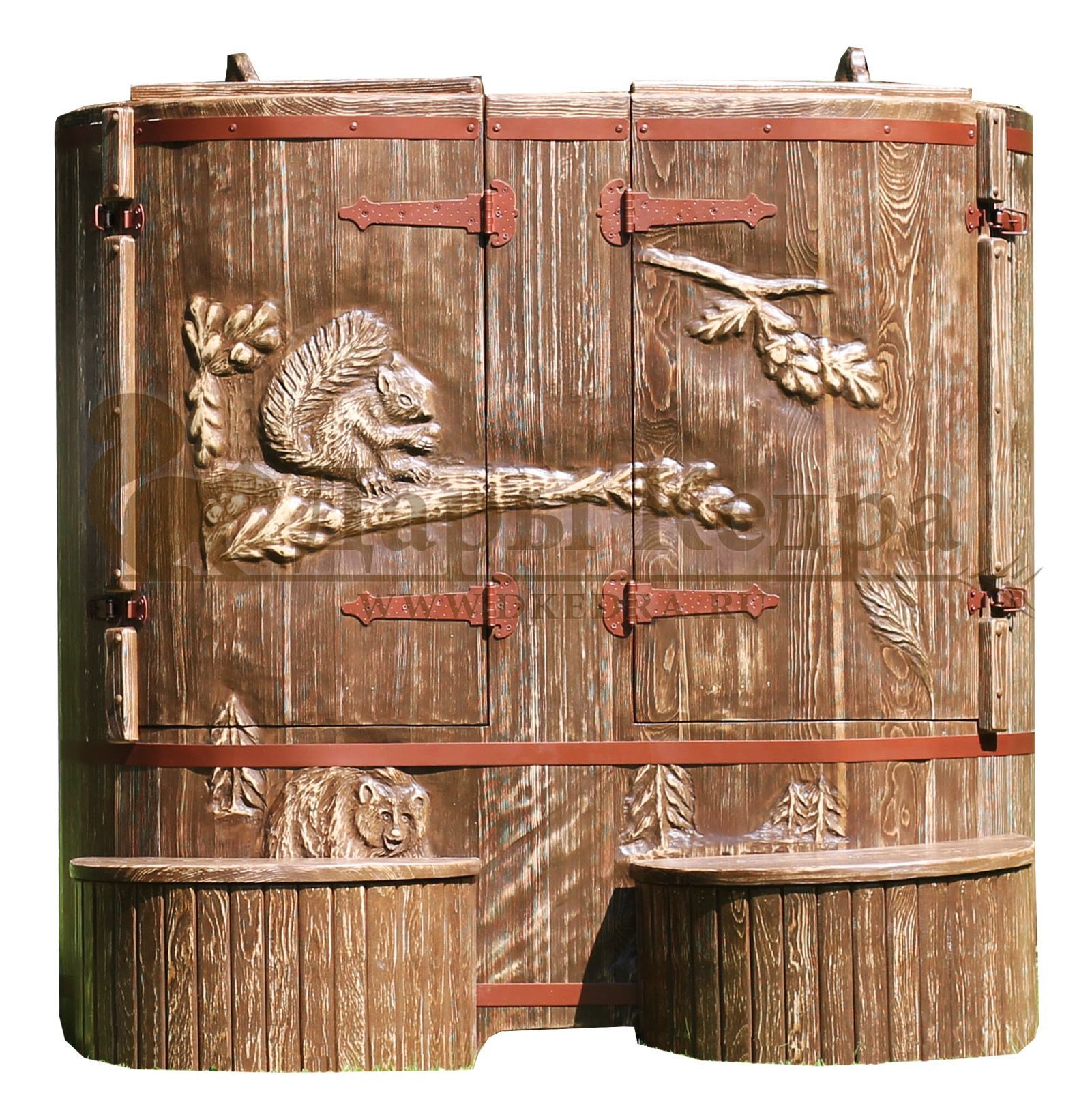Кедровая бочка (фитобочка) «Фирменная» Это эксклюзивная фитобочка любой модели и комплектации с резьбой вашего логотипа или фирменного знака. Просто приготовьте эскиз рисунка, и наши мастера перенесут его на изделие. Авторский рисунок на фитобочек придаст оригинальность вашему дому или салону красоты, подчеркнёт вашу индивидуальность и непревзойденный вкус. Художественная резьба это ручная работа, выполняется разными мастерами и каждый рисунок неповторим. Вы можете выбрать предложенные варианты резьбы или подобрать изображение и мы предложим вам подходящий эскиз. На сайте представлены наши работы в качестве примера. Каждая резьба рассчитывается индивидуально и может быть нанесена на любую модель фитобочки. Парение в фитобочке благотворно влияет на организм в целом: повышается иммунитет, выводятся шлаки и токсины, улучшается работа органов тела и состояние кожи. Обязательно обращайте внимание на размер дверных проемов вашего помещения. Если они меньше 78 см, то закажите разборную модель!
