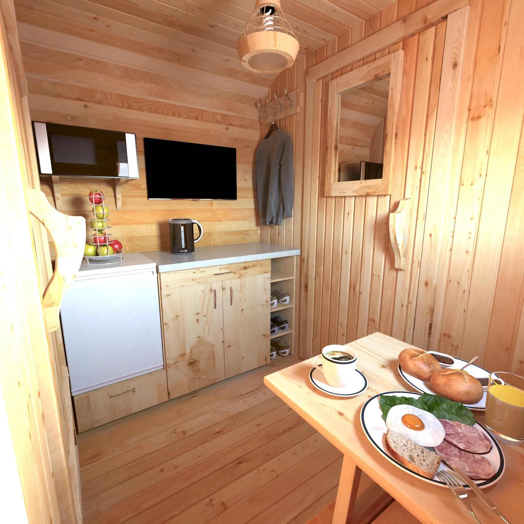 - Вешалка и полочка в раздевалке из кедра